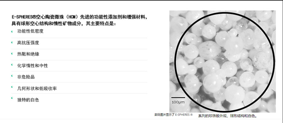 E-SPHERES是一種先進(jìn)的陶瓷材料,可提升工程材料的性能及減輕材料重量,其球狀性可重塑世界。空心陶瓷微珠(HCID又是一種強(qiáng)大的功能性添加劑,每個(gè)粒子幾乎呈完美的球形,有助于提高配方和工程材料的關(guān)鍵性能。