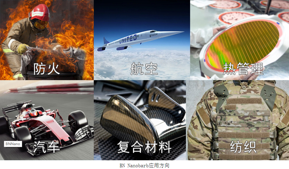 這款集各種優(yōu)勢(shì)性能于一身的氮化硼納米管,作為填料添加到基體材料中使用時(shí),在不改變生產(chǎn)工藝的前提下,僅需微量添加即可生產(chǎn)出高性能復(fù)合材料,可與多種物質(zhì)混合,包括樹脂、碳纖維、玻璃纖維、聚纖維、塑料、陶瓷等,廣泛應(yīng)用于復(fù)合材料、航空航天、汽車、船舶、熱能和紡織領(lǐng)域。
