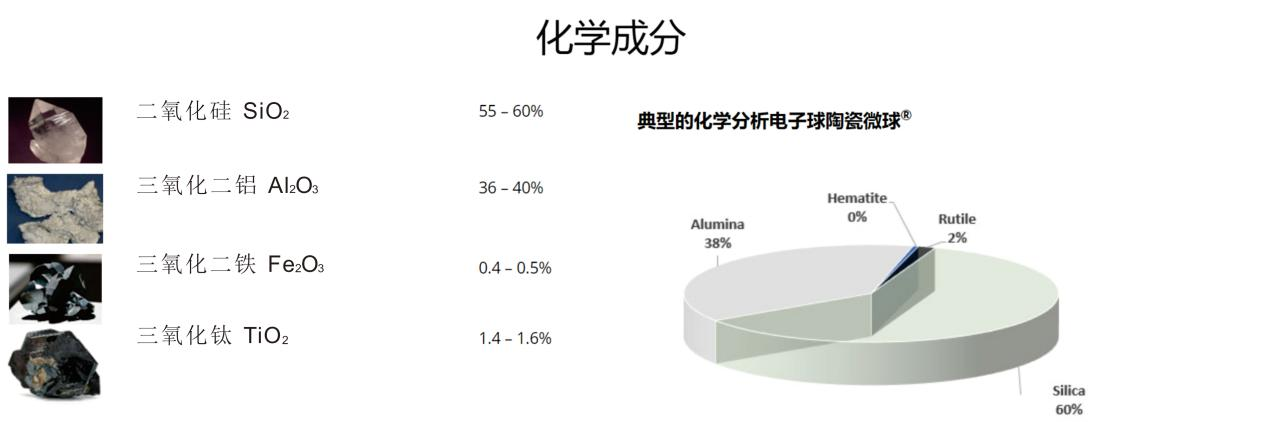 空心陶瓷微珠是近年來發展起來的一種多用途、性能優異的新型填料。該材料的主要成分為二氧化硅和三氧化鋁組成,可改善材料的密度及導熱系數大幅下降,同時不會對材料的力學性能造成影響。