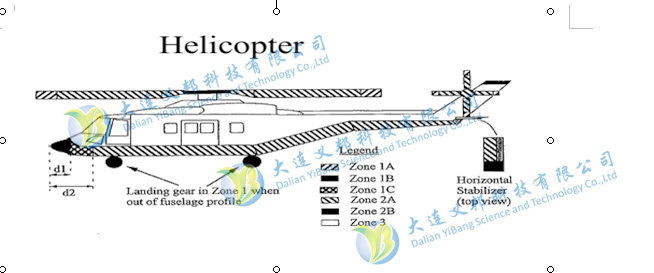 常用的防雷三級分區示意圖,可鋪貼于機身、機翼、方向舵、擾流板、垂直尾翼、副翼、襟翼、隙翼以及發動機短艙等部位。