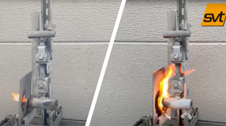 大連義邦SVT防火織物,是一種帶有膨脹防火涂層的玻璃纖維織物,在遇到著火的情況下會形成防火保護層。為了滿足更高的防火保護需求,這種防火織物可應用于強化電池包殼體,與環氧樹脂施工體系相適配,通過RTM或SMC等工藝方式加入到整體或夾層中,來替代鋁材質。SVT抗熱失控沖擊防火織物厚度僅為0.8mm,耐高溫可達到1400℃。可以實現電池包輕量化及防火功能性的提升。